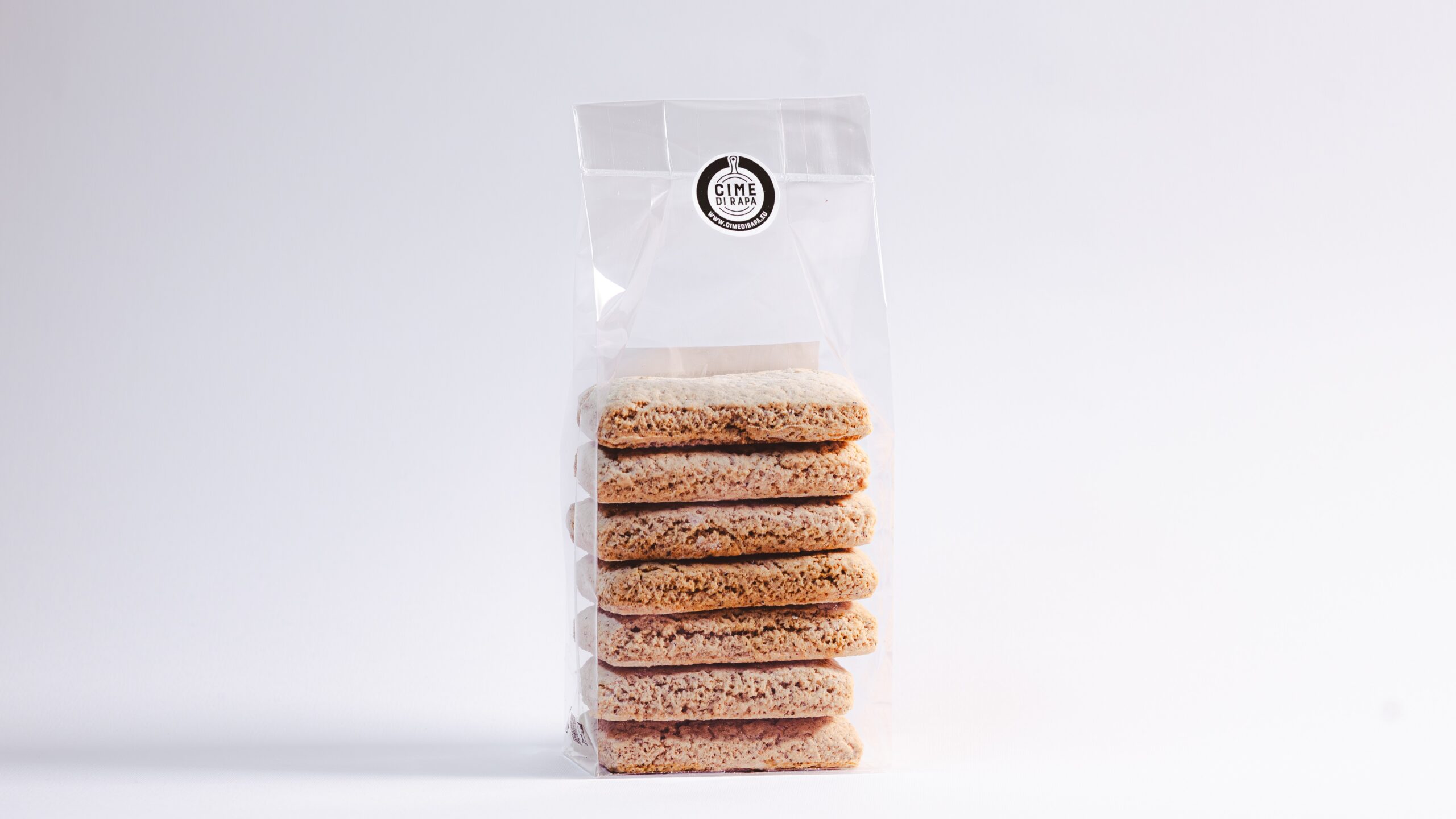 Questo ‘biscottone’ è detto da ‘inzuppo’ in quanto si è soliti inzupparlo nel latte la mattina! Ne esistono svariate versioni un po’ in tutto il sud Italia; chi usa il lievito, chi il latte, chi il burro, etc. Noi seguiamo una ricetta semplicissima che non prevede latte bensì acqua, non prevede burro ma olio extravergine di oliva. Alla farina bianca abbiamo aggiunto un 20% di farina di grano saraceno, dal gusto inconfondibile.